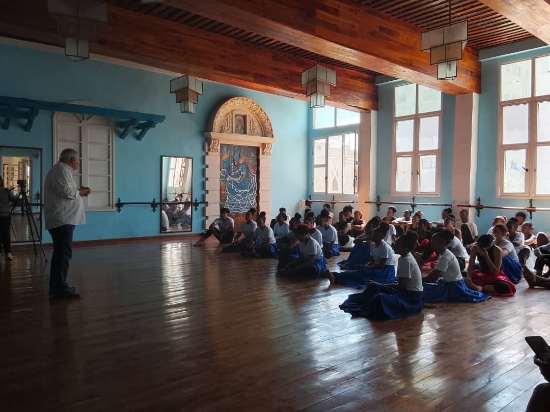 En su ruta de encuentro con el arte, Alpidio Alonso llegó también hasta la sede del Conjunto Folklórico Nacional (CFN), donde pudo apreciar las transformaciones que la agrupación ha enfrentado para acoger a un gran número de estudiantes de la Escuela Nacional de Danza y la Facultad de Arte Danzario (FAD) que allí reciben las prácticas necesarias para continuar la carrera.