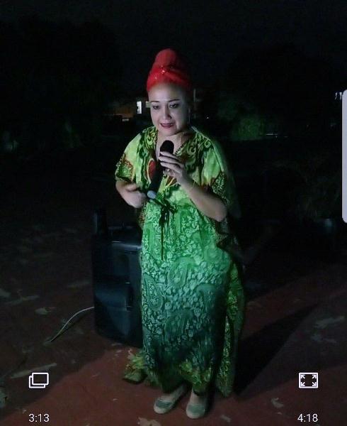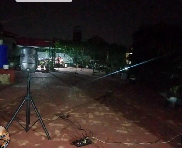 Consulté la idea con los dos y formamos un equipo de producción de la actividad. Orelvis asume la producción del pequeño espectáculo con dos bafles, un micrófono inalámbrico, una lámpara solar y un farol que nos donó una vecina.