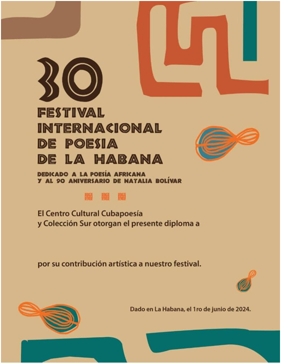 “Del 27 de mayo al 1ero de junio la 30 edición será un Festival especial dedicado a África y a la recién fallecida Natalia Bolívar; por lo que hemos invitado a Mukoma, un gran intelectual keniano que ha estado vinculado con la Universidad de La Habana en estos últimos meses y que traerá varios hablantes de suajili, además de otros escritores con relación al Movimiento Poético Mundial. De igual manera, vamos a estar acercándonos a la visión y a la raíz de la filosofía, la poesía y el pensamiento africano. Todo un reto resumir, en una semana, una cultura continental”.