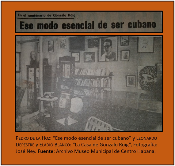 En relación directa con la musealización del patrimonio cultural inmaterial se traen como referente los artículo “Ese modo esencial de ser cubano”, publicado por Pedro de la Hoz, en las Culturales del Granma,[28] y “La Casa de Gonzalo Roig”, de Leonardo Depestre Catony y Eladio Blanco Cabrera, con imágenes de José Ney, ambos en el marco del centenario del natalicio de Gonzalo Roig en 1990.