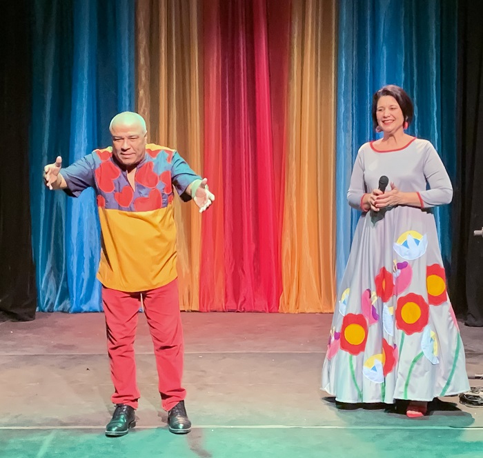 La cantante Olga Blanco, con más de tres décadas de trayectoria, fue el centro de una velada que reunió música, teatro y danza. La acompañaron Raúl Valdés (teclados), Irina Madrazo (flauta), Dolly Díaz (oboe) y Patricia García (fagot), junto a la actriz Laura Marín, los actores Freddy Maragotto, Iván García, Raúl Álvarez, el bailarín Yadiel Durán, y los solistas y bailarines de la Compañía Musical Infantil-Juvenil Gabi y Sofi.