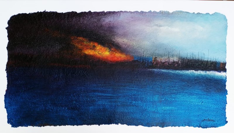 Ciudad y mar, acrilico sobre papel manufacturado, 70x50cm, 2022
