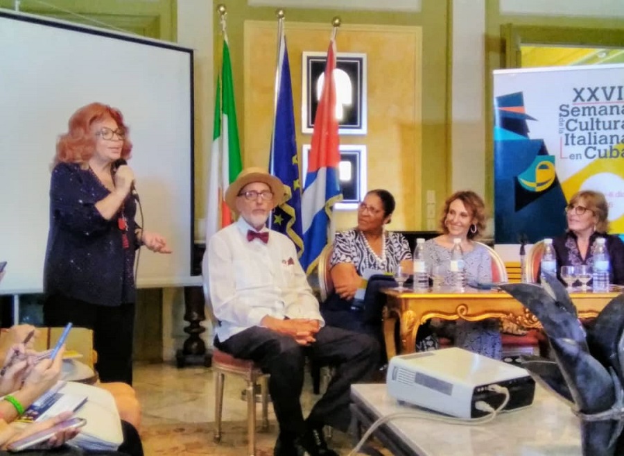 La embajadora de Italia en Cuba, Excelentísima Señora Simona De Martino, dio a conocer los pormenores de la XVIII Semana de la Cultura Italiana en Cuba. Foto: Del autor